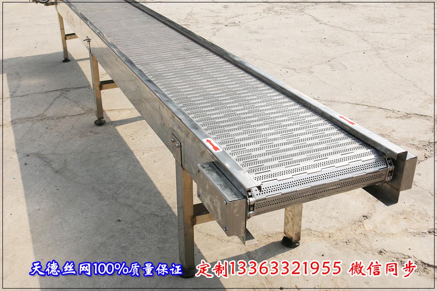 河北天德絲網制品有限公司生產不銹鋼輸送機、網帶輸送機、金屬輸送帶、鏈板輸送帶、板式網鏈:13363321955 http://m.xm1929.cn/