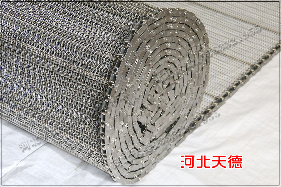 輸送機(jī)網(wǎng)帶采用鏈條傳動(dòng)的網(wǎng)帶通常是鋼絲編織的,鋼絲直徑由1.0-3.0毫米。