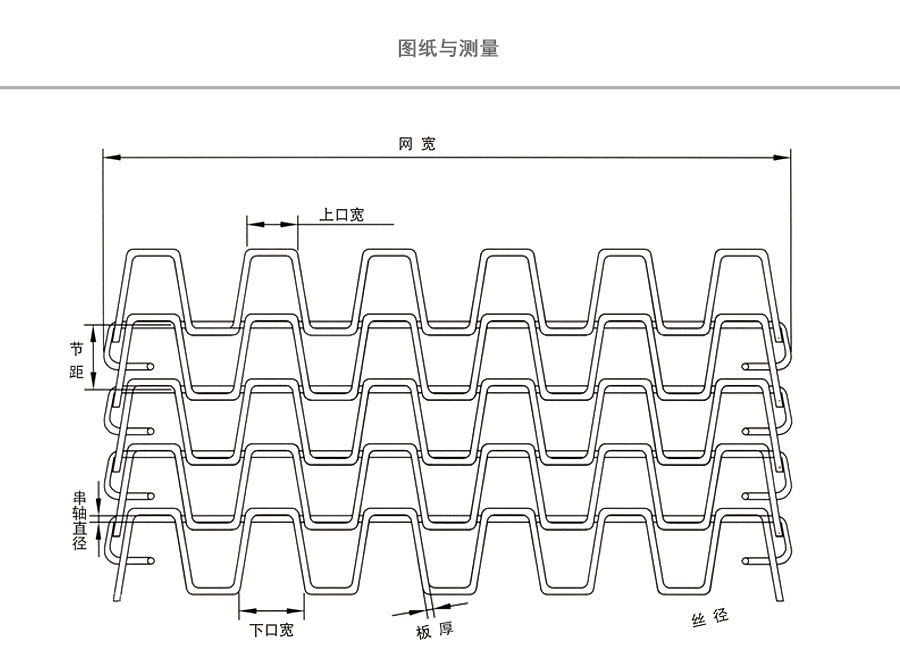 長(zhǎng)城網(wǎng)帶簡(jiǎn)介:又稱(chēng)馬蹄鏈,由扁平金屬片和圓金屬絲所組成,網(wǎng)帶自重輕,網(wǎng)孔空隙大,網(wǎng)面平整,運(yùn)行平穩(wěn),不會(huì)走偏。可作洗滌、干燥、降溫、熱處理的輸送線(xiàn)。
