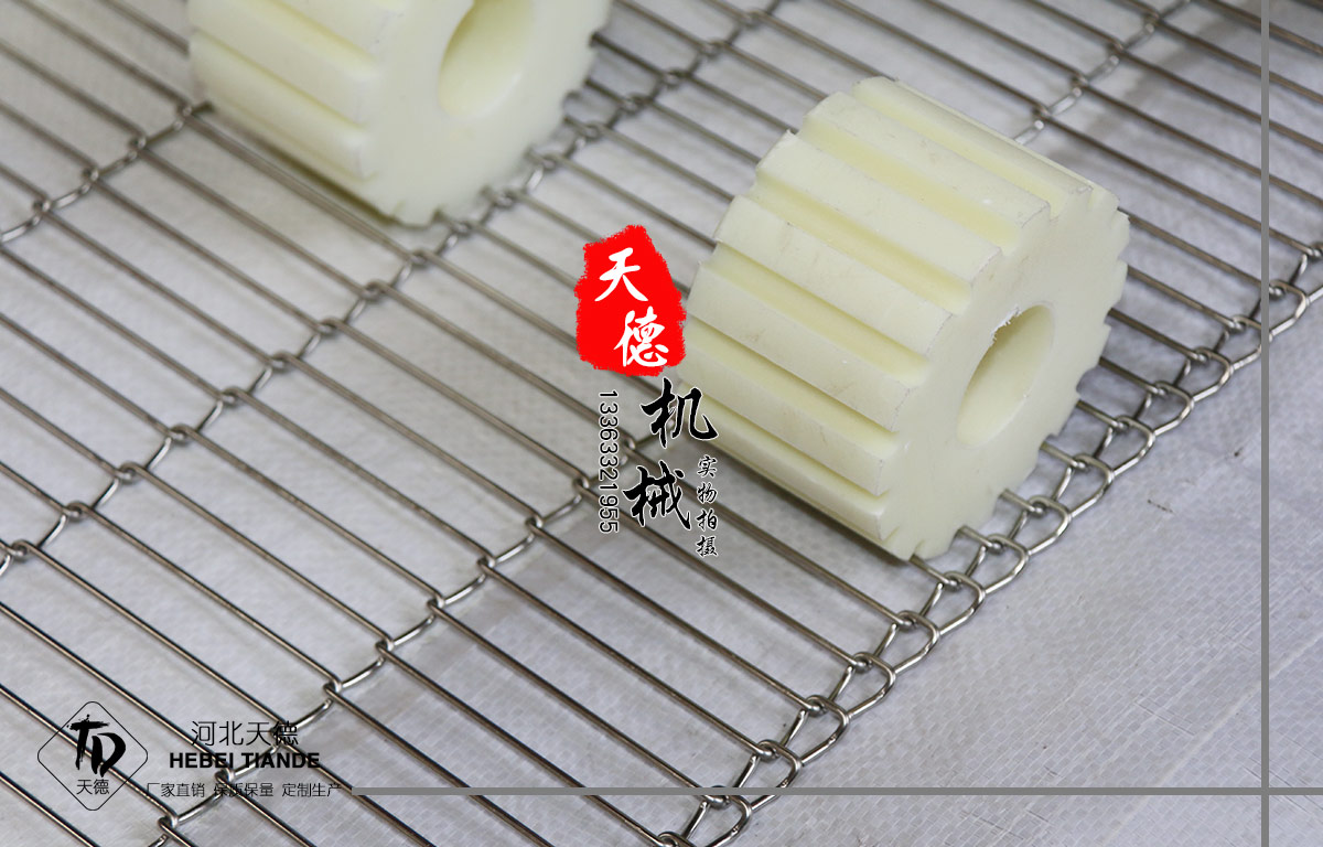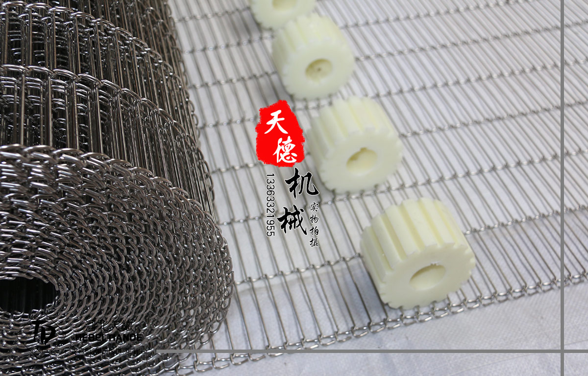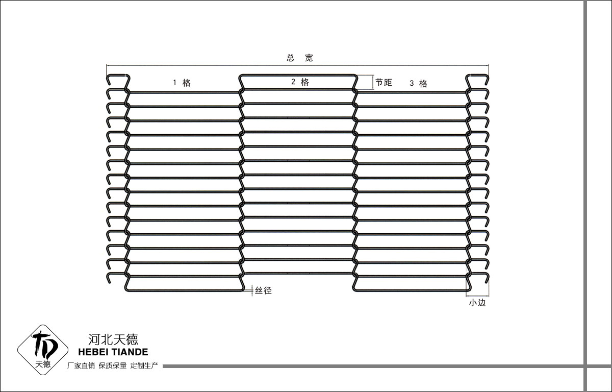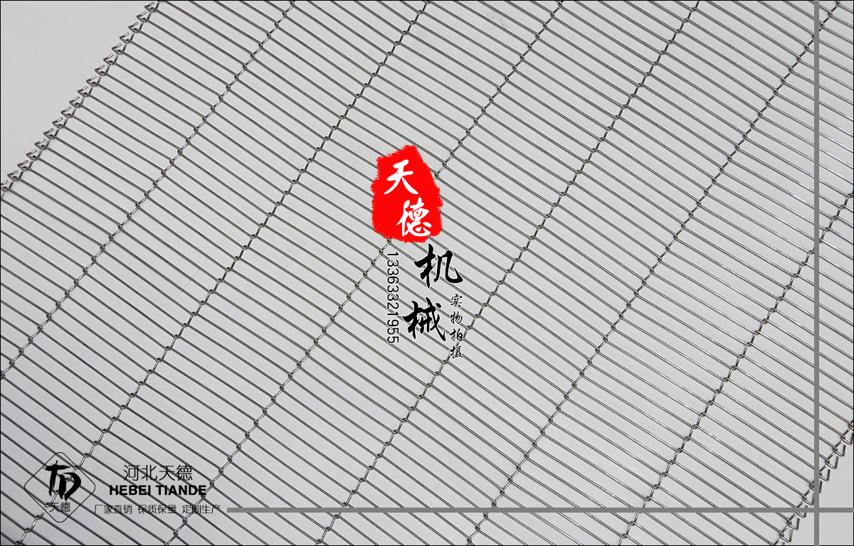 乙字網帶使用不銹鋼高彈柔韌絲制作。網帶多用單小邊結構(常用),雙小邊結構用于特殊用途??梢杂糜谥本€輸送機,也可以用于轉彎輸送機。