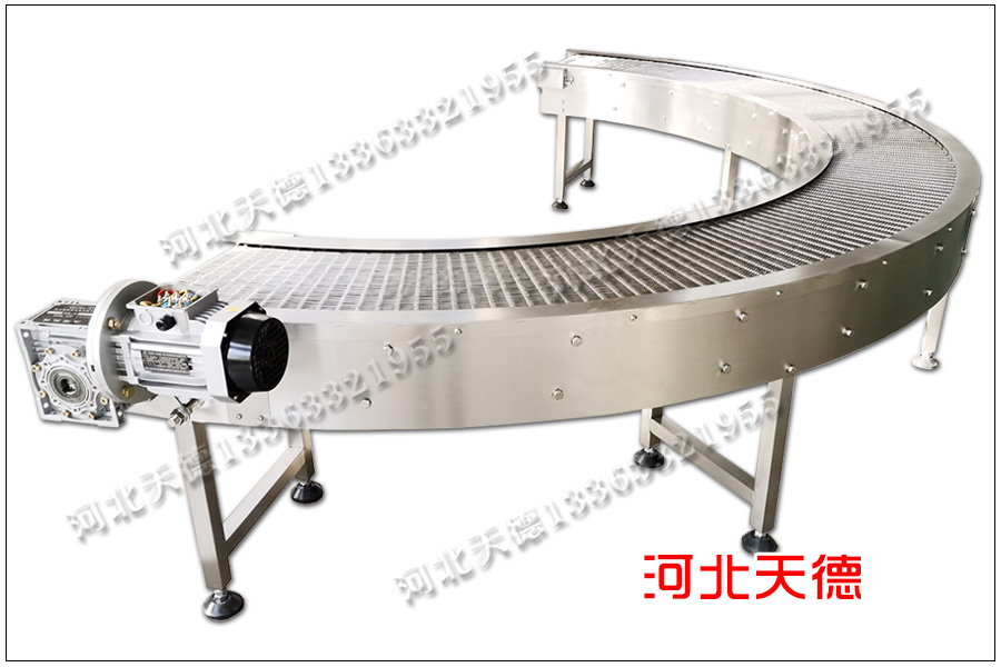 這里要介紹的這款是四川的客戶定制的轉彎網帶輸送機,一般轉彎機采用鏈條輸送帶和鏈板輸送帶作為輸送件的比較,