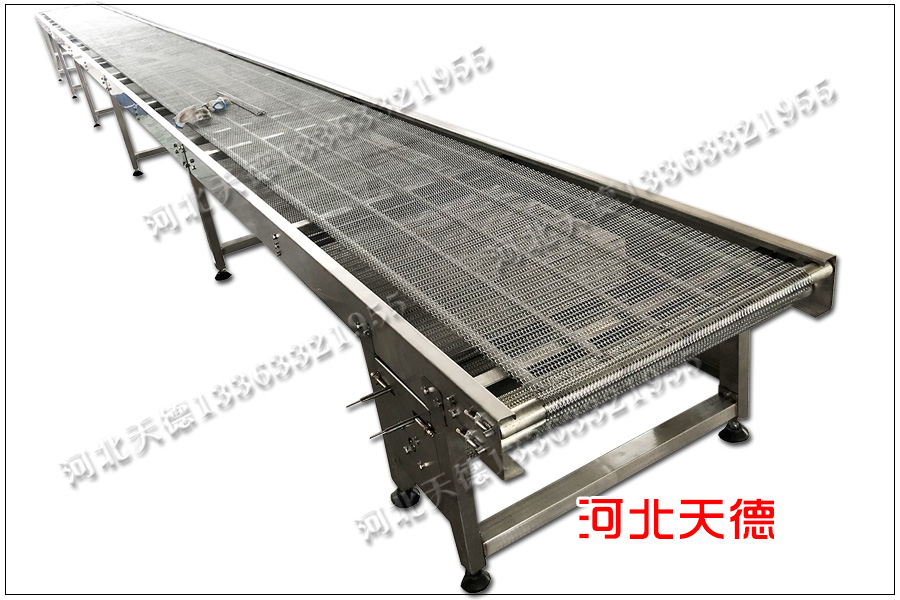 下面這一臺(tái)乙型網(wǎng)帶輸送機(jī)是湖北客戶定制的,用來輸送輕載物品,該設(shè)備采用的是乙型網(wǎng)帶來傳送,這種金屬輸送帶不帶鏈條,成本低。