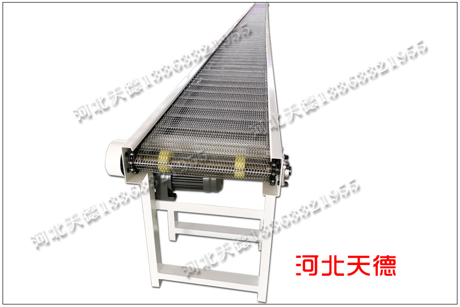 輸送線采用大滾珠鏈條式不銹鋼輸送帶來傳送物料,這種不銹鋼輸送帶是采用鋼絲編織在焊邊,鏈接上串桿與鏈條加工成的,詳細的規格尺寸是根據輸送產品的大小與重量來定制的,本臺網帶輸送機鏈條輸送帶詳細的尺寸為: