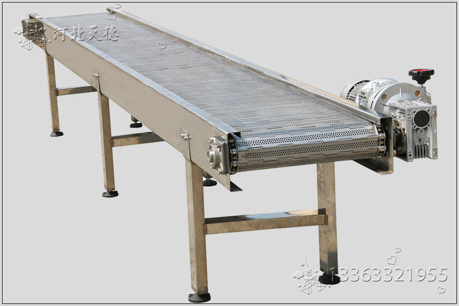 輸送鏈為大滾子鏈,連續(xù)循環(huán)輸送,可用于物料的水平、爬坡、提升輸送。