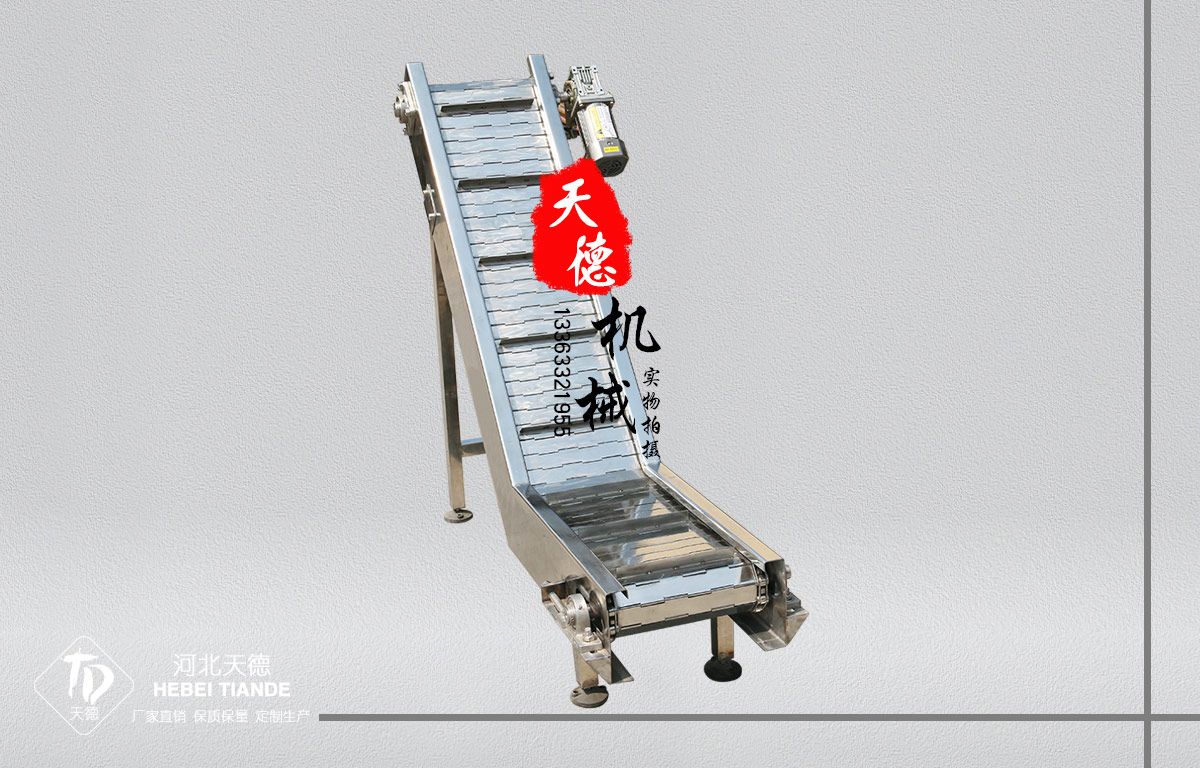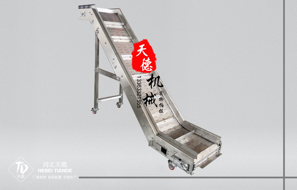 ◆不銹鋼304鏈板輸送機一般都可以直接用水沖洗或直接浸泡在水中,設備清潔方便,能滿足食品、飲料行業(yè)對衛(wèi)生的要求。