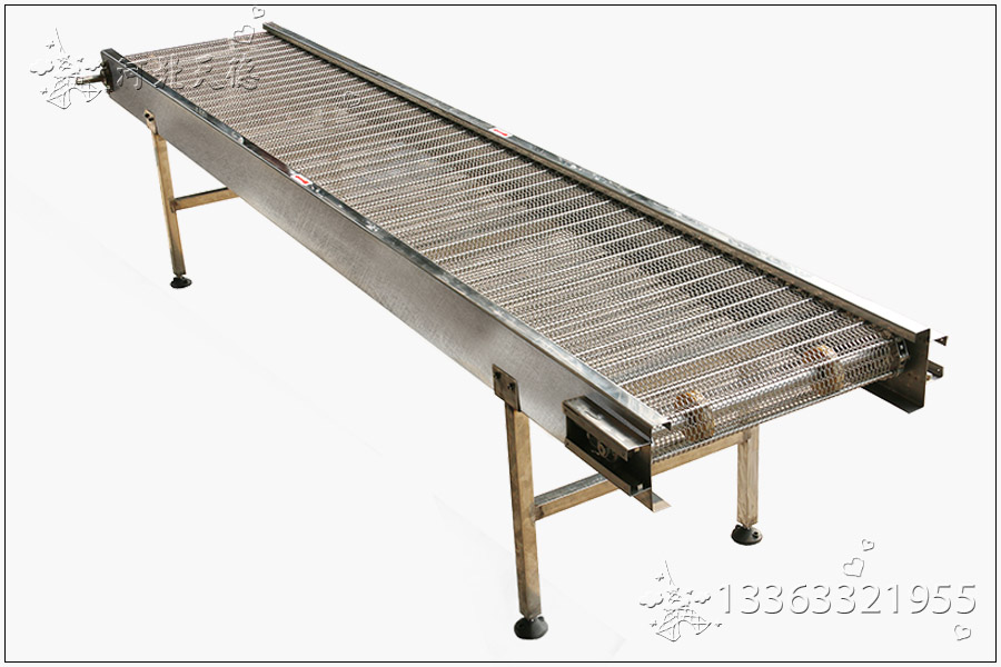 這種直線行駛的網(wǎng)帶輸送機可以與爬坡輸送機、轉(zhuǎn)彎輸送機形成一條流水線進(jìn)行工作的銜接。