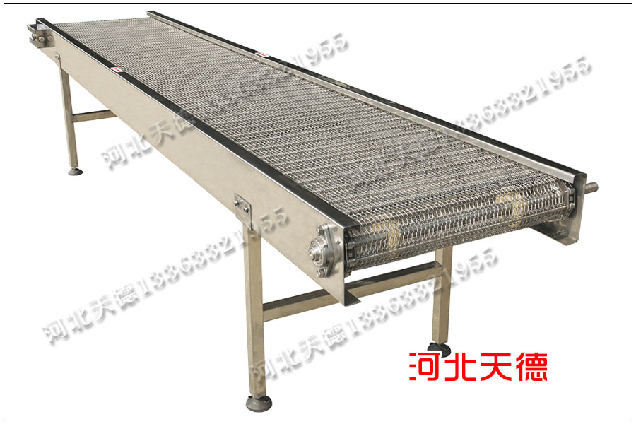 山西陽泉客戶定制的不銹鋼網(wǎng)帶輸送機(jī),這臺(tái)輸送機(jī)用于高溫中使用,因此整機(jī)采用不銹鋼304材質(zhì),輸送機(jī)長度5米,總寬度650毫米,高度大概半米,采用1.5千瓦電機(jī),配電減速機(jī)變頻器。