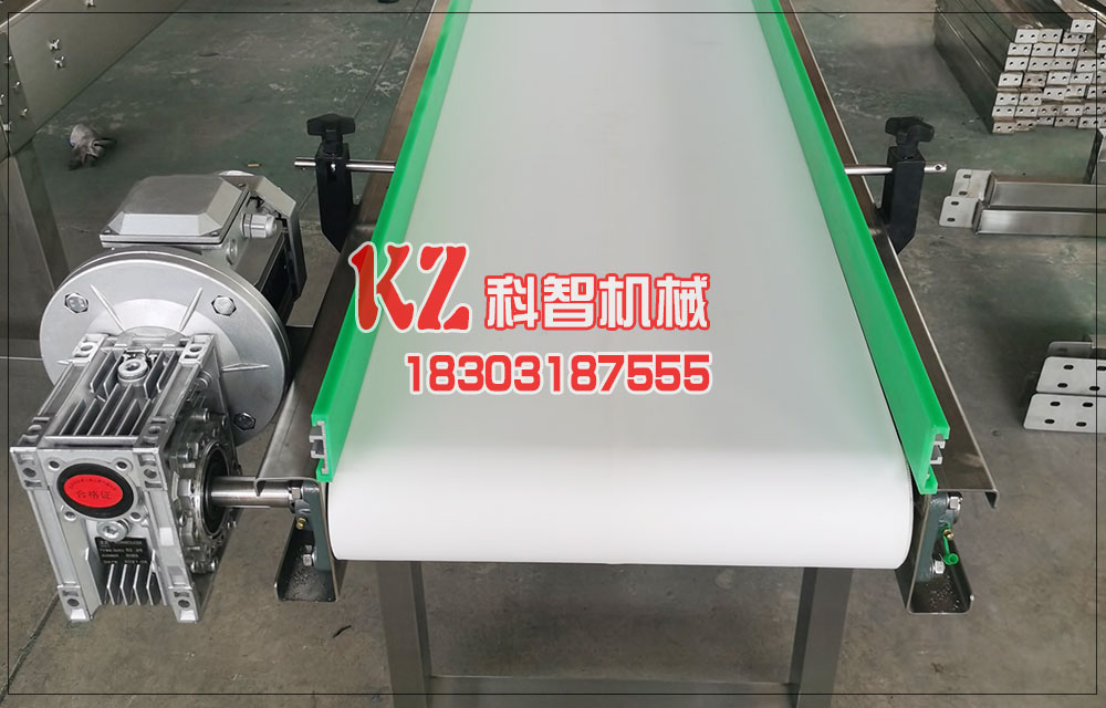 綠色裙邊傳送帶PVC皮帶輸送機故障維修  輸送機皮帶跑偏在輸送過程中常出現的一種故障,不能盡快的發現與維護,輕則會使得皮帶輸送機損耗加重,嚴重時會使皮帶發生軟化、燒焦甚發火災。導致皮帶發生跑偏的原因有很多的,安裝時引起皮帶跑偏,...